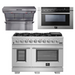 FORNO Appliance Package - 48 Inch Gas Burner/Electric Oven Pro Range, Wall Mount Range Hood, Microwave Drawer, AP-FFSGS6187-48-3