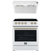 Forno Espresso 30" Electric Range in White with Antique Brass Handles, FFSEL6012-30WHTForno Espresso 30" Under Cabinet Range Hood in White with Antique Brass Handles, FRHUC5255-30WHT