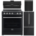 FORNO Espresso Package - 30" Electric Range, Range Hood, 30" Refrigerator with Ice Maker and Dishwasher in Black with Silver Accents