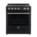 FORNO Espresso Package - 30" Electric Range, Range Hood and Refrigerator in Black with Antique Brass Handles, FBDL-001-02US