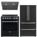 FORNO Espresso Package - 30" Electric Range, Range Hood and Refrigerator in Black with Silver Handles