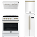 FORNO Espresso Package - 30" Electric Range, Range Hood, Refrigerator and Dishwasher in White with Antique Brass Handles