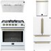 FORNO Espresso Package - 30" Gas Range, Range Hood, 36" Refrigerator with Ice Maker and Dishwasher in White with Antique Brass Accents
