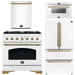 FORNO Antico Package - 36" Dual Fuel Range, 36" Refrigerator with Ice Maker, Dishwasher and 24" Microwave Drawer in White with Antique Brass Accents