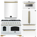 FORNO Antico Package - 48" Gas Range, 36" Refrigerator with Ice Maker, Dishwasher and 24" Microwave Drawer in White with Antique Brass Accents