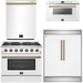 FORNO Galiano Package - 36" Dual Fuel Range, 60" Side-by-Side Refrigerator with Grill Trim, Dishwasher and 24" Microwave Drawer in White with Antique Brass Accents