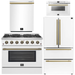 FORNO Galiano Package - 36" Gas Range, 36" Refrigerator with Ice Maker, Dishwasher and 24" Microwave Drawer in White with Antique Brass Accents