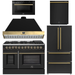 FORNO Galiano Package - 48" Dual Fuel Range, Range Hood, 36" Refrigerator with Ice Maker, Dishwasher and 24" Microwave Drawer in Black with Antique Brass Accents
