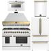 FORNO Galiano Package - 48" Dual Fuel Range, Range Hood, 36" Refrigerator with Ice Maker, Dishwasher and 24" Microwave Drawer in White with Antique Brass Accents