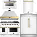 FORNO Galiano Package - 48" Dual Fuel Range, Range Hood, 60" Side-by-Side Refrigerator, Dishwasher and 24" Microwave Drawer in White with Antique Brass Accents