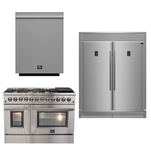 View full detailsForno Appliance Package - 48 in. Galiano Dual Fuel Range with 8 Defendi Italian Burners in Stainless Steel, powerful dishwasher and spacious 60 Inc...