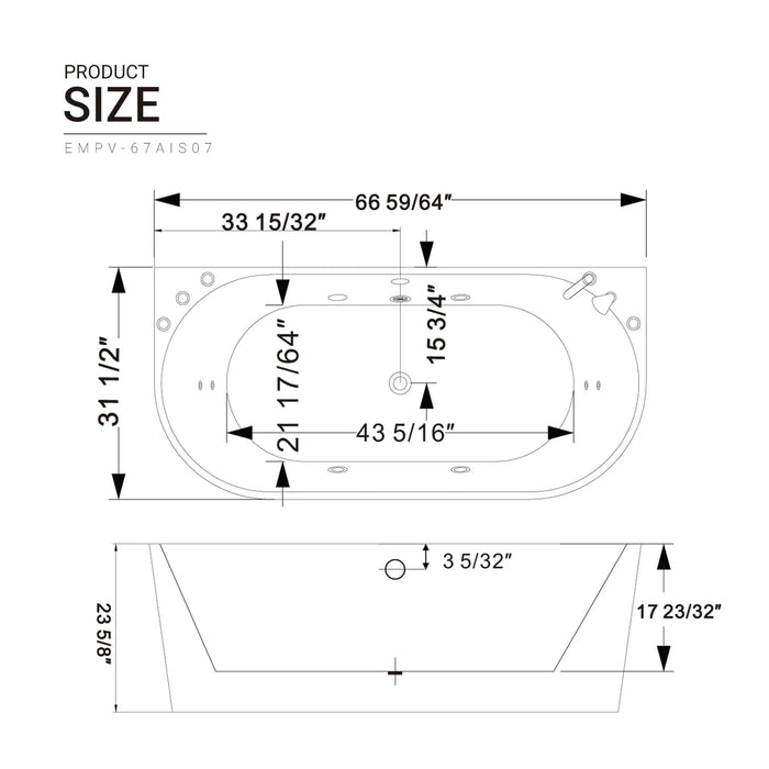 Empava 67-Inch Whirlpool Freestanding Acrylic Bathtub (EMPV-67AIS07)