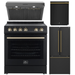 FORNO Espresso Package - 30" Electric Range, Range Hood, 30" Refrigerator with Ice Maker and Dishwasher in Black with Antique Brass Accents
