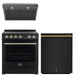 Forno Espresso 30" Electric Range in Black with Antique Brass Handles, FFSEL6012-30BLKForno Espresso 30" Under Cabinet Range Hood in Black with Antique Brass Handles, FRHUC5255-30BLK
