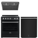 FORNO Espresso Package - 30" Electric Range, Range Hood and Dishwasher in Black with Silver Handles