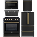 FORNO Espresso Package - 30" Induction Range, Range Hood, 36" Refrigerator with Ice Maker, Dishwasher and 24" Microwave Drawer in Black with Antique Brass Accents