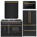 FORNO Galiano Package - 48" Gas Range, 36" Refrigerator with Ice Maker, Dishwasher and 24" Microwave Drawer in Black with Antique Brass Accents