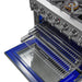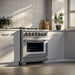 The Forno Capriasca 36 Inch Gas Range enhances your home kitchen with professional styling and performance through its durable and beautiful 304-grade stainless-steel design. The cooking surface features 6 sealed dual-ring brass burners, totaling 120,000 BTU. All burners, each at 20,000 BTU, can simmer precisely at 1,000 BTU. Continuous heavy-duty cast-iron grates facilitate easy sliding of pots or pans off heat over the enamel cooktop cavity, simplifying spill cleanup. The 5.36 cu. ft. gas oven, with a 30,000 BTU output and infrared red mesh broiler, enclosed in a blue enamel interior, offers optional convection for precise, and consistent cooking on multiple levels. For convenient viewing, a 3-layer glass oven door window is included. The package includes 3 telescopic stainless-steel oven racks, wok support, and an LP conversion kit. Additionally, zinc-coated illuminated metal knobs with bezel rings ensure enduring beauty.