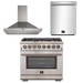 FORNO Appliance Package - 36 Inch Gas Burner/Electric Oven Pro Range, Wall Mount Range Hood, Dishwasher, AP-FFSGS6187-36-W-2