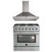 FORNO Appliance Package- 36 Inch Gas Range, Wall Mount Range Hood, AP-FFSGS6244-36-W