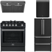 FORNO Espresso Package - 30" Gas Range, Range Hood, 36" Refrigerator with Ice Maker and Dishwasher in Black with Silver Accents