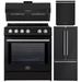 FORNO Espresso Package - 30" Induction Range, Range Hood, 30" Refrigerator with Ice Maker and Dishwasher in Black with Silver Accents