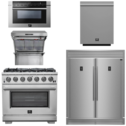 View full detailsThe Forno Appliance Package - 36 in. Pro Range with 6 Italian Burners in Stainless Steel, Refrigerator and Freezer, Microwave Drawer, and Dishwashe...