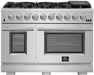 - This 48" Pro-Style Gas Range by Forno offers a 8 Defendi Italian Brass Burner cooktop and 6.58 cu. ft. of total oven capacity. The range also features cast iron grates, convection fan and halogen lighting.
