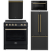 FORNO Espresso Package - 30" Electric Range, 30" Refrigerator with Ice Maker, Dishwasher and 24" Microwave Drawer in Black with Antique Brass Accents