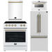 FORNO Espresso Package - 30" Electric Range, 30" Refrigerator with Ice Maker, Dishwasher and 24" Microwave Drawer in White with Antique Brass Accents