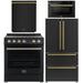 FORNO Espresso Package - 30" Electric Range, 36" Refrigerator with Ice Maker, Dishwasher and 24" Microwave Drawer in Black with Antique Brass Accents