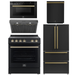 FORNO Espresso Package - 30" Electric Range, Range Hood, 36" Refrigerator with Ice Maker, Dishwasher and 24" Microwave Drawer in Black with Antique Brass Accents