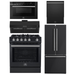 FORNO Espresso Package - 30" Gas Range, Range Hood, 30" Refrigerator with Ice Maker, Dishwasher and 24" Microwave Drawer in Black with Silver Accents