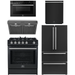 FORNO Espresso Package - 30" Gas Range, Range Hood, 36" Refrigerator with Ice Maker, Dishwasher and 24" Microwave Drawer in Black with Silver Accents