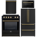 FORNO Espresso Package - 30" Induction Range, 36" Refrigerator with Ice Maker, Dishwasher and 24" Microwave Drawer in Black with Antique Brass Accents