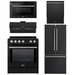 FORNO Espresso Package - 30" Induction Range, Range Hood, 30" Refrigerator with Ice Maker, Dishwasher and 24" Microwave Drawer in Black with Silver Accents