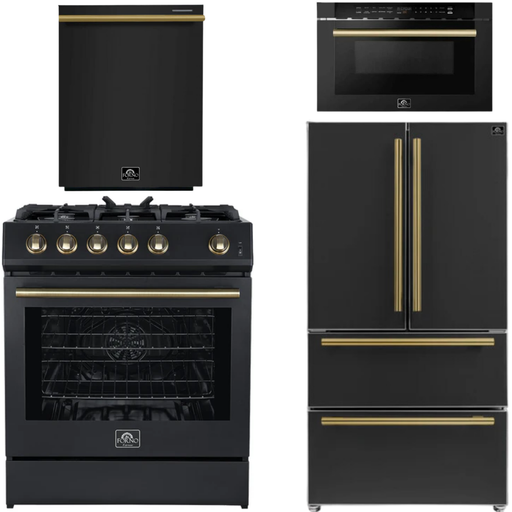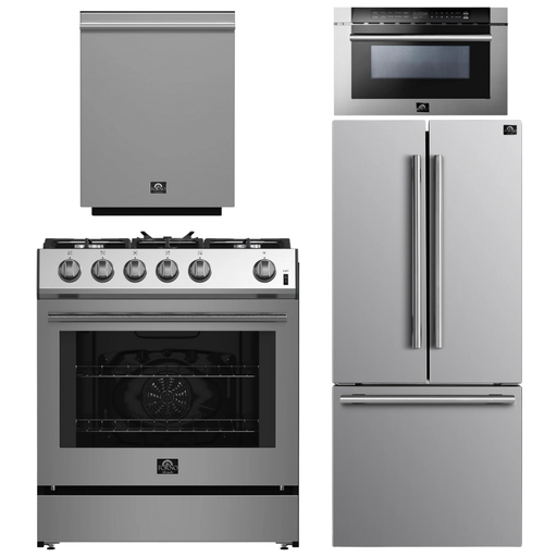 Upgrade your kitchen with the Forno Espresso Package, featuring a 30" Gas Range, 36" Refrigerator with Ice Maker, Dishwasher and 24" Microwave Draw...