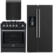 FORNO Espresso Package - 30" Gas Range, 36" Refrigerator with Water and Ice Dispenser and Dishwasher in Black with Silver Accents