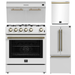 FORNO Espresso Package - 30" Gas Range, Range Hood, 30" Refrigerator with Ice Maker and Dishwasher in White with Antique Brass Accents